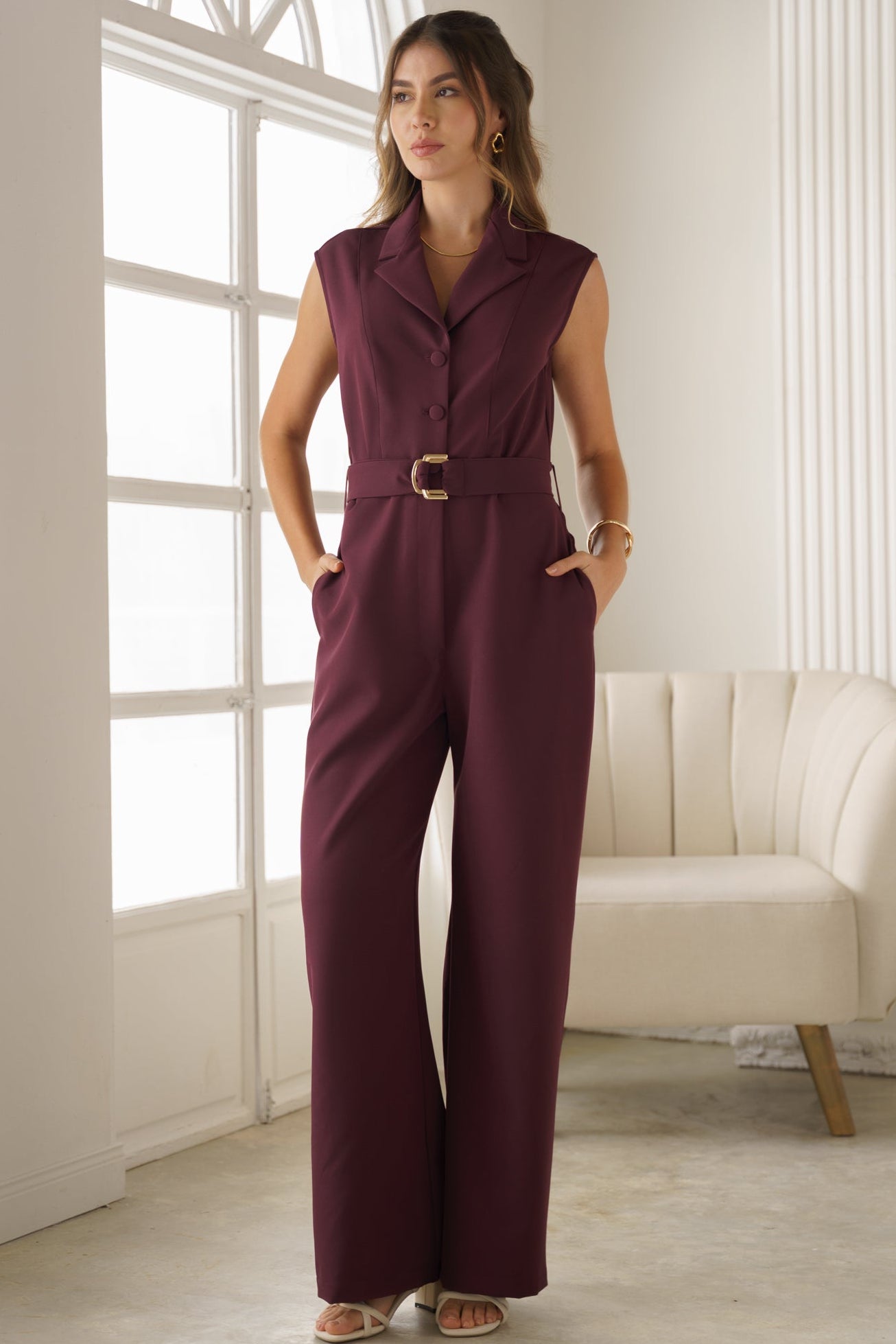 ✨ Enterizo Largo Tipo Sastre – Tono Vinotinto ✨