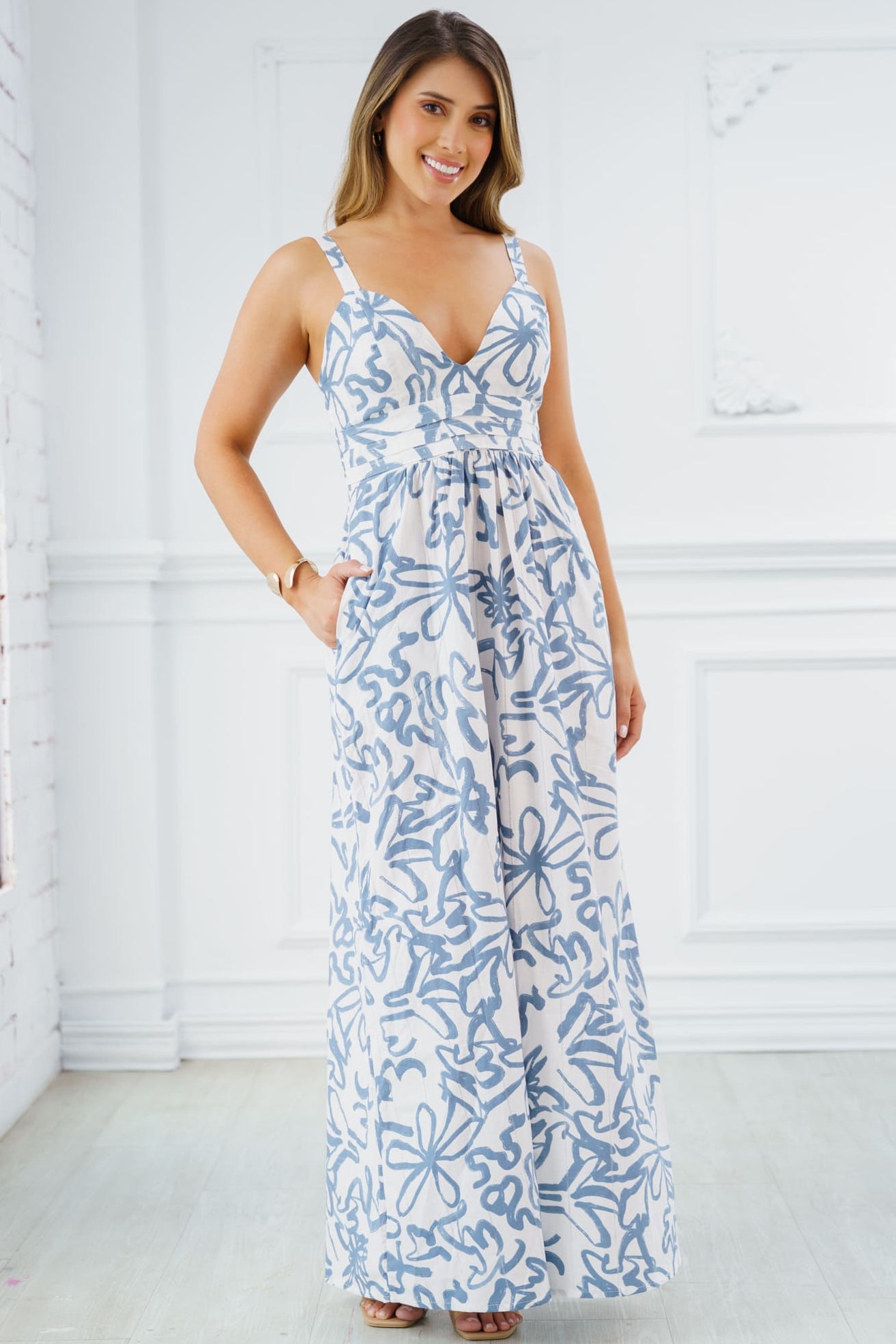 Este vestido largo es la definición de elegancia relajada. Con un diseño de tirantes anchos y escote en V, realza delicadamente la figura y aporta un toque muy femenino. Su silueta fluida cae con gracia desde el corte imperio, brindando comodidad y movimiento en cada paso.