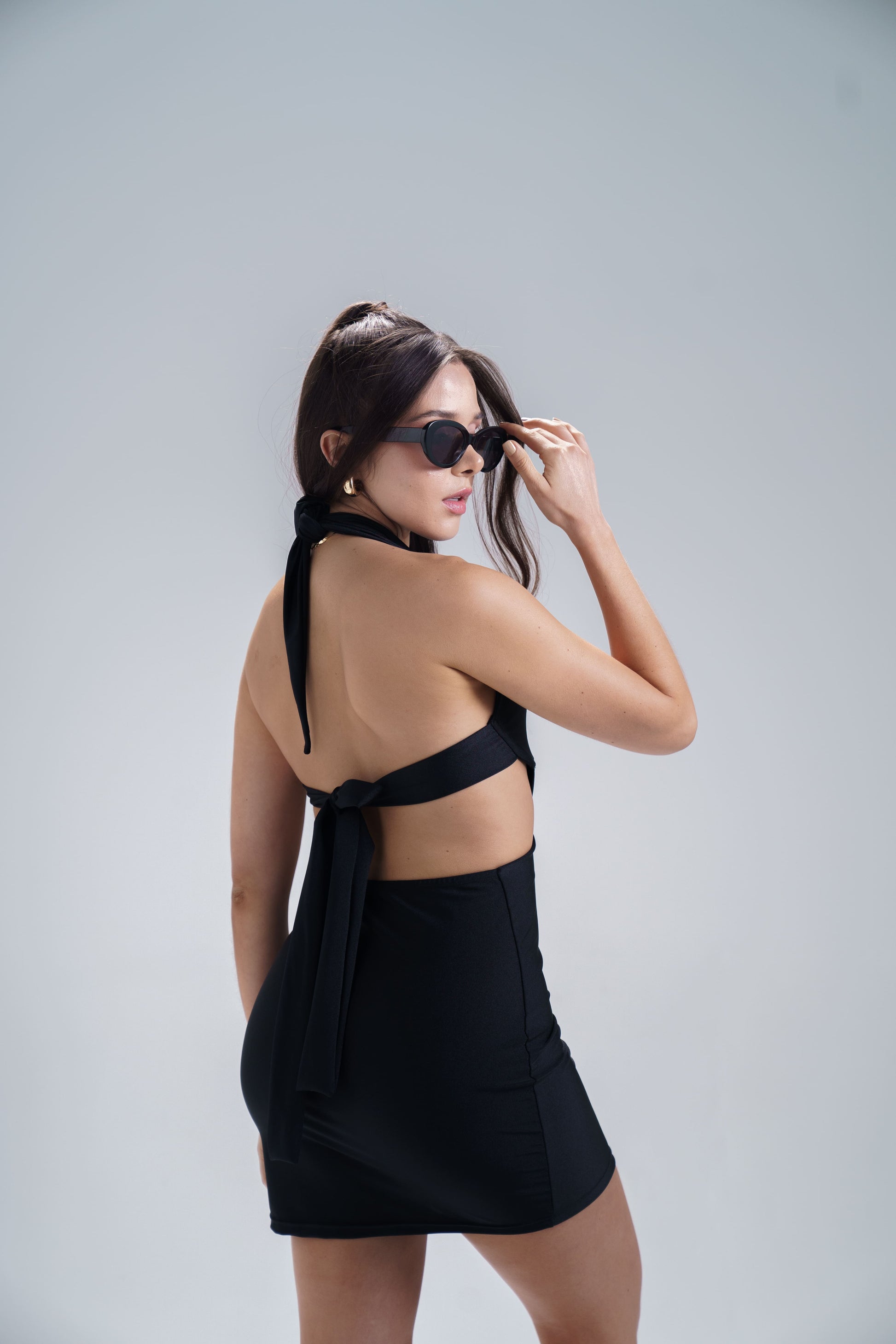 Atrevido, sofisticado y con un toque de sensualidad. El Vestido Midnight Cutout es una pieza infaltable para tus noches más memorables. Su diseño con cortes estratégicos en la cintura y escote profundo tipo halter realza la figura y ofrece un look moderno y audaz.